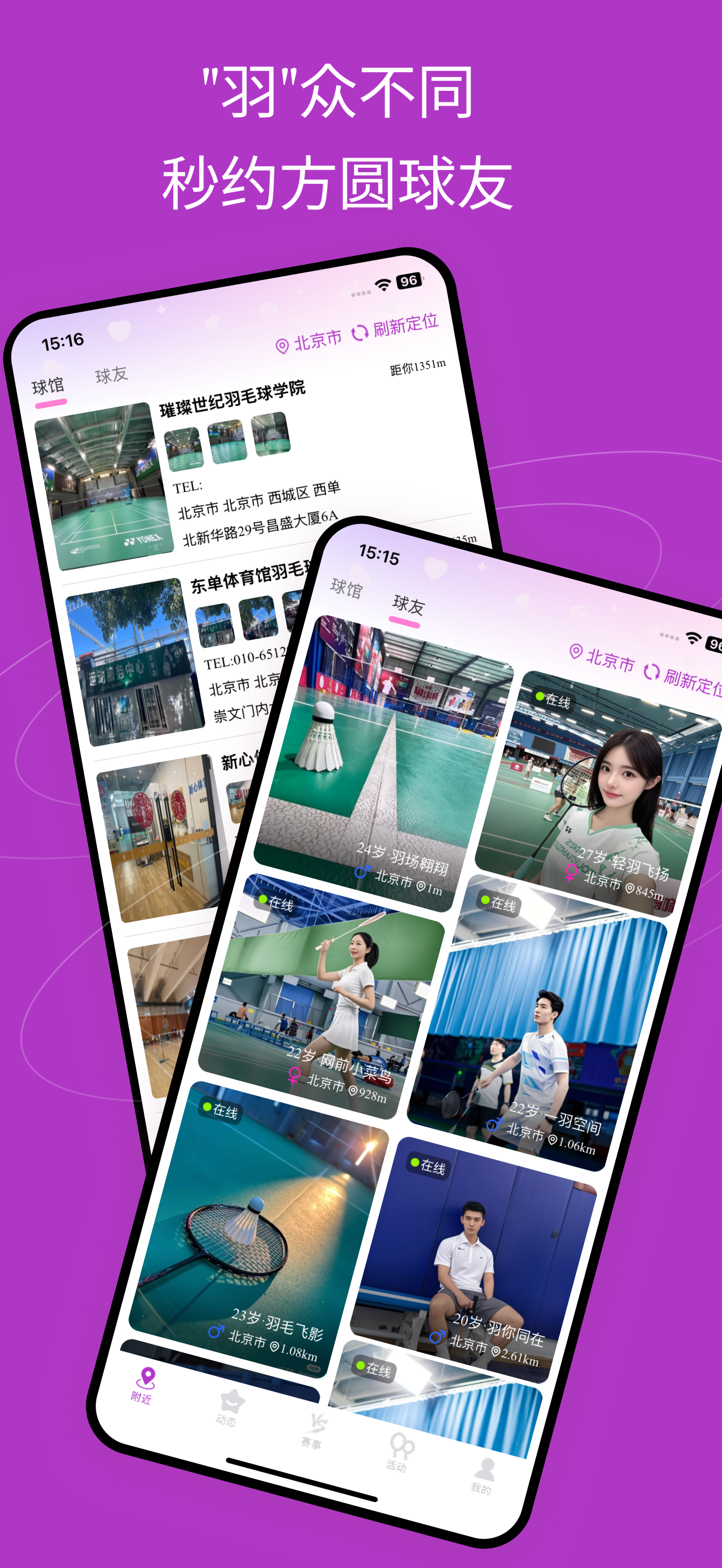 一款专注于羽毛球运动以球会友的app,通过定位推荐附近球友及场馆、支持动态分享与活动组织,让热爱羽毛球的人,随时约、随时打!